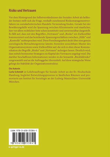 Vor dem Hintergrund des Selbstverständnisses der Sozialen Arbeit als helfender Instanz stellt sich die Frage, weshalb zunehmend Risikomanagementverfahren im sozialarbeiterischen Handeln Verwendung finden. Gerade bei der Bewährungshilfe wird die Spannung zwischen Klientenseite und staatlicher, hier vor allem rechtlicher Seite schon konstitutiv und unvermeidbar dargestellt. Es fällt auf, dass mit den Begriffen "Vertrauen" und "Risiko" ein Zielkonflikt kommuniziert und das bestehende Spannungsverhältnis zwischen "Hilfe" und "Kontrolle" mitbesprochen wird. Diese Forschungsarbeit deckt über eine genuin soziologische Betrachtungsweise latente, bisweilen unsichtbare Muster des Organisationssystems sowie Zielkonflikte auf, die sich in eben dieser Kommunikation der Begriffe "Risiko" und "Vertrauen" aufzeigen lassen. Deutlich wird, dass mittels bestimmter Strategien ein Kapital des Vertrauens angelegt wird. Die darüber beschaffenen Informationen werden in die Semantik "Rückfallrisiko" umgewandelt und an die Auftraggeber übermittelt. Auf diese strategische Weise gelingt die Stabilität der Organisationsstruktur.