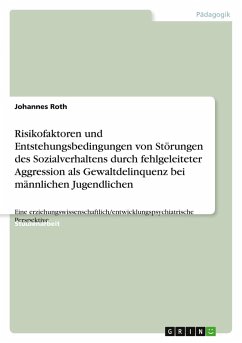 Studienarbeit aus dem Jahr 2010 im Fachbereich Pädagogik - Pädagogische Psychologie, Note: 1,0, Pädagogische Hochschule Heidelberg, Veranstaltung: Gewalt und Aggression in Schule und Gesellschaft, Sprache: Deutsch, Abstract: Bei den Jugendstrafgefangenen in Deutschland herrschte 2005 ein Männeranteil von ca. 87% vor.[...] Eine Jugendstrafe kann vom Richter nur dann verhängt werden, wenn sie wegen "Schädlicher Neigungen" oder der "Schwere der Schuld" erforderlich erscheint. [...] Wie sich in Kapitel 2 herausstellen wird, führen männliche Jugendliche und Heranwachsende besonders bei den Körperverletzungsdelikten die Statistik als Täter und Opfer an. Obwohl diese Statistik nur die Anzahl der polizeilich bekanntgewordenen Fälle von Gewalttätigkeit zeigt, gibt sie dennoch einen Eindruck von Häufigkeit und Verteilung der Gewalt. Es scheint also eine Korrelation zwischen dem Geschlecht und sozial unverträglichen Verhaltensweisen zu geben, die das Risiko einer polizeilichen Erfassung, erhöhen.[...] In der vorliegenden Arbeit möchte ich Zusammenhänge darstellen. Zunächst werde ich dazu die kriminologischen Hintergründe des (gegenüber den Mädchen) hohen Risikos von männlichen Jugendlichen und Heranwachsenden aufdecken, durch gewalttätiges Verhalten aufzufallen und delinquent zu werden.[...] Nach einer Erläuterung der Arbeitsbegriffe stelle ich einige geschlechtsspezifischen Merkmalen des männlichen Geschlechts aus verschiedenen Perspektiven dar. Dazu fasse ich einige besondere Bedingungen, die sich mit dem Thema Männlichkeit und Sozialverhalten befassen, zusammen. Eine entwicklungspsychiatrische Sicht überschneidet sich dabei teilweise mit soziologischen und pädagogischen Ergebnissen. Ich werde anschließend einige Faktoren darstellen, die das Risiko erhöhen, sozialunverträgliche Verhaltensstrukturen und Persönlichkeitsmerkmale zu entwickeln. Allen voran stehen hier zwei Begriffe von Aggression, die im Falle einer Fehlanpassung ein besonders hohes Risiko darstellenein problematisches Sozialverhalten zu entwickeln und delinquent zu werden. Was darunter zu verstehen ist, wird in Kapitel 6 dargestellt.[...] Welche Entstehungsbedingungen sich, in besonders verhängnisvoller Weise hervortun und wie diese die Entwicklung fehlangepasster Aggression oder antisoziale Persönlichkeitsstrukturen begünstigen, soll Teil dieser Arbeit sein.