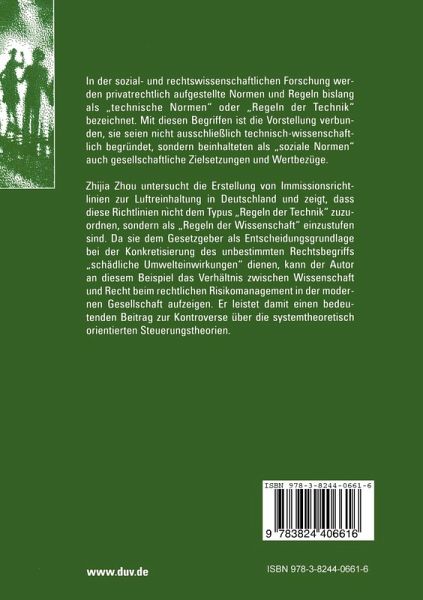 Zhijia Zhou untersucht die Erstellung von Immissionsrichtlinien zur Luftreinhaltung in Deutschland und zeigt, dass diese Richtlinien nicht dem Typus "Regeln der Technik" zuzuordnen, sondern als "Regeln der Wissenschaft" einzustufen sind. Da sie dem Gesetzgeber als Entscheidungsgrundlage bei der Konkretisierung des unbestimmten Rechtsbegriffs "schädliche Umwelteinwirkungen" dienen, kann der Autor an diesem Beispiel das Verhältnis zwischen Wissenschaft und Recht beim rechtlichen Risikomanagement in der modernen Gesellschaft aufzeigen. Er leistet damit einen bedeutenden Beitrag zur Kontroverse über die systemtheoretisch orientierten Steuerungstheorien.