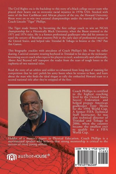 The Civil Rights era is the backdrop to this story of a black college soccer team who played their hearts out to overcome racial injustice in 1970s USA. Stocked with some of the best Caribbean and African players of the era, the Howard University Bison went on to win two national championships under the martial discipline of Coach Lincoln "Tiger" Phillips. The Tiger made history by becoming the first college coach to win an NCAA championship for a Historically Black University, when the Bison stormed to the 1971 and 1974 titles. He is a former professional goalkeeper who did his utmost to repel the sorcery of Brazilian maestro Pelé in the early days of professional soccer in the United States, and helped take Trinidad & Tobago to bronze at the 1967 Pan Am Games. This biography crackles with anecdotes of Coach Phillips's life. From his roller skating, Carnival costume-wearing boyhood in Trinidad to his days as the nickname-bestowing soccer coach who expects his players to excel, academically and athletically, Above And Beyond will transport the reader from the tears of tough losses to the euphoria of two national titles. Read the story of an athlete and soldier so exhausted from long days of training for competition that he can't polish his army boots when he returns to base, and learn about the man who finds the ideal slogan to rally the embattled Howard team to a second national title after they're stripped of the first.