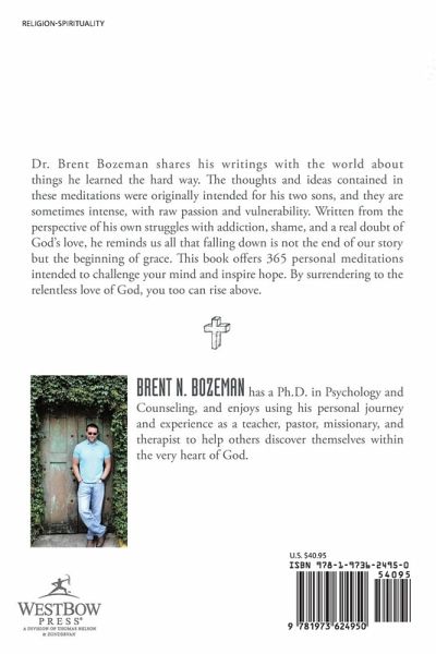 Dr. Brent Bozeman shares his writings with the world about things he learned the hard way. The thoughts and ideas contained in these meditations were originally intended for his two sons, and they are sometimes intense, with raw passion and vulnerability. Written from the perspective of his own struggles with addiction, shame, and a real doubt of Gods love, he reminds us all that falling down is not the end of our story but the beginning of grace. This book offers 365 personal meditations intended to challenge your mind and inspire hope. By surrendering to the relentless love of God, you too can rise above.