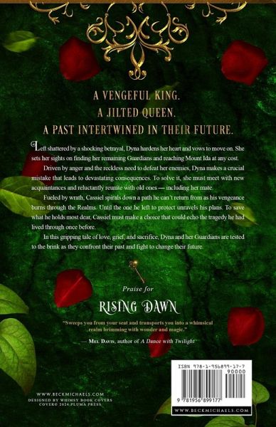 A VENGEFUL KING.A JILTED QUEEN.A PAST INTERTWINED IN THEIR FUTURE. Left shattered by a shocking betrayal, Dyna hardens her heart and vows to move on. She sets her sights on finding her remaining Guardians and reaching Mount Ida at any cost. Driven by anger and the reckless need to defeat her enemies, Dyna makes a crucial mistake that leads to devastating consequences. To solve it, she must meet with new acquaintances and reluctantly reunite with old ones-including her mate. Fueled by wrath, Cassiel spirals down a path he can't return from as his vengeance burns through the Realms. Until the one he left to protect unravels his plans. To save what he holds most dear, Cassiel must make a choice that could echo the tragedy he had lived through once before. In this gripping tale of love, grief, and sacrifice, Dyna and her Guardians are tested to the brink as they confront their past and fight to change their future.