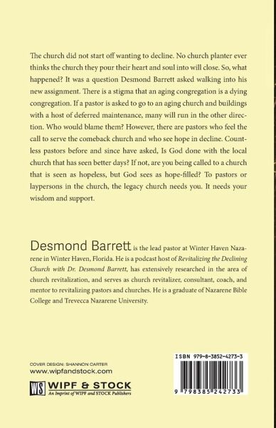 The church did not start off wanting to decline. No church planter ever thinks the church they pour their heart and soul into will close. So, what happened? It was a question Desmond Barrett asked walking into his new assignment. There is a stigma that an aging congregation is a dying congregation. If a pastor is asked to go to an aging church and buildings with a host of deferred maintenance, many will run in the other direction. Who would blame them? However, there are pastors who feel the call to serve the comeback church and who see hope in decline. Countless pastors before and since have asked, Is God done with the local church that has seen better days? If not, are you being called to a church that is seen as hopeless, but God sees as hope-filled? To pastors or laypersons in the church, the legacy church needs you. It needs your wisdom and support.