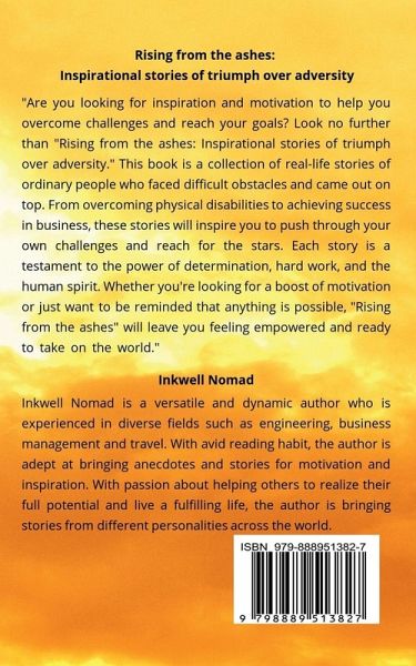 Are you looking for inspiration and motivation to help you overcome challenges and reach your goals? Look no further than ""Rising from the ashes: Inspirational stories of triumph over adversity."" This book is a collection of real-life stories of ordinary people who faced difficult obstacles and came out on top. From overcoming physical disabilities to achieving success in business, these stories will inspire you to push through your own challenges and reach for the stars. Each story is a testament to the power of determination, hard work, and the human spirit. Whether you're looking for a boost of motivation or just want to be reminded that anything is possible, ""Rising from the ashes"" will leave you feeling empowered and ready to take on the world.