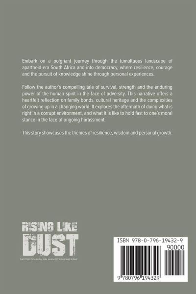 Embark on a poignant journey through the tumultuous landscape of apartheid-era South Africa and into democracy, where resilience, courage and the pursuit of knowledge shine through personal experiences. Follow the author's compelling tale of survival, strength and the enduring power of the human spirit in the face of adversity. This narrative offers a heartfelt reflection on family bonds, cultural heritage and the complexities of growing up in a changing world. It explores the aftermath of doing what is right in a corrupt environment, and what it is like to hold fast to one's moral stance in the face of ongoing harassment. This story showcases the themes of resilience, wisdom and personal growth.
