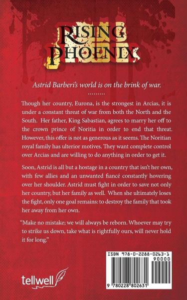 Astrid Barberi's world is on the brink of war. Though her country, Eurona, is the strongest in Arcias, it is under a constant threat of war from both the North and the South. Her father, King Sabastian, agrees to marry her off to the crown prince of Noritia in order to end that threat. However, this offer is not as generous as it seems. The Noritian royal family has ulterior motives. They want complete control over Arcias and are willing to do anything in order to get it. Soon, Astrid is all but a hostage in a country that isn't her own, with few allies and an unwanted fiancé constantly hovering over her shoulder. Astrid must fight in order to save not only her country, but her family as well. When she ultimately loses the fight, only one goal remains: to destroy the family that took her away from her own. "Make no mistake; we will always be reborn. Whoever may try to strike us down, take what is rightfully ours, will never hold it for long."