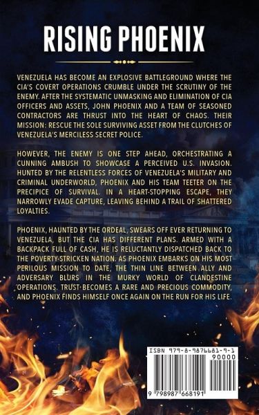 "Rising Phoenix is an addictive, action-packed spy thriller set in the fascinating geopolitical battleground that is Venezuela. Mark Greaney fans may find a new favorite in Evan Graver." BestThrillers.com Venezuela has become an explosive battleground where the CIA's covert operations crumble under the scrutiny of the enemy. After the systematic unmasking and elimination of CIA officers and assets, John Phoenix and a team of seasoned contractors are thrust into the heart of chaos. Their mission: rescue the sole surviving asset from the clutches of Venezuela's merciless secret police. However, the enemy is one step ahead, orchestrating a cunning ambush to showcase a perceived U.S. invasion. Hunted by the relentless forces of Venezuela's military and criminal underworld, Phoenix and his team teeter on the precipice of survival. In a heart-stopping escape, they narrowly evade capture, leaving behind a trail of shattered loyalties. Phoenix, haunted by the ordeal, swears off ever returning to Venezuela, but the CIA has different plans. Armed with a backpack full of cash, he is reluctantly dispatched back to the poverty-stricken nation. As Phoenix embarks on his most perilous mission to date, the thin line between ally and adversary blurs in the murky world of clandestine operations. Trust becomes a rare and precious commodity, and Phoenix finds himself once again on the run for his life.