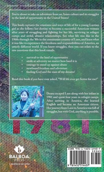 You’re about to take an adventure from an Asian culture and its struggles to the land of opportunity in the United States! This book captures the emotions and ways of life of for a young Laotian girl as she follows her destiny to become a successful American woman after years of struggling and fighting for her life, surviving in refugee camps and awful, abusive relationships. See what life was like in the 1960s through the ‘80s in the communist country of Laos, and learn what it was like to experience the freedoms and responsibilities of America, an utterly different world. If you know struggles, then you can relate to the raw emotions that this book entails. • survival to the land of opportunity • smile at adversity no matter how hard it is • courage to stand up against abuse • newfound freedom and adventure • finding God and the man of my dreams! Read this book if you have ever asked, "Will life ever get better for me?"