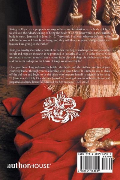 Rising to Royalty is a prophetic message of hope and inspiration to the body of Christ to seek out their divine calling of being the bride of Christ Jesus while in their natural body in earth. Jesus said in John 14:12, "Very truly I tell you, whoever believes in me will do the works I have been doing, and they will do even greater things than these, because I am going to the Father." Rising to Royalty shares the secrets of the Father that he gives to his prince and princesses to rule and reign on the earth as he promised in Proverbs 25:2-3: "It is the glory of God to conceal a matter; to search out a matter is the glory of kings. As the heavens are high and the earth is deep, so the hearts of kings are unsearchable." Does your heart long to know the height, the depth, and the hidden promises of your Heavenly Father through your relationship with Jesus Christ? It is time for you to shake off the old you and begin to be the bride who prepares herself to reign with her king. "I, John, saw the Holy City, the new Jerusalem, coming down out of heaven from God, prepared as a bride beautifully dressed for her husband" (Rev. 21:2).