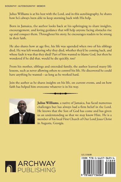 Julius Williams is at his best with the Lord, and in this autobiography, he shares how he's always been able to keep storming back with His help. Born in Jamaica, the author looks back at his upbringing to share insights, encouragement, and loving guidance that will help anyone facing obstacles rise up and conquer them. Throughout his story, he encourages readers to be strong in their faith. He also shares how at age five, his life was upended when two of his siblings died. He was left wondering why they died, whether they'd be coming back, and whose fault it was that they died? Part of him wanted to blame God, but then he wondered if he did that, would he die quickly, too? From his mother, siblings and extended family, the author learned many life lessons, such as never allowing others to control his life. He discovered he could have anything he wanted-as long as he worked hard. Join the author as he shares insights on his life, on current events, and on how faith has helped him overcome whatever is in his way.