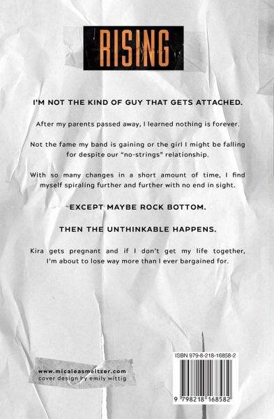 I'm not the kind of guy that gets attached. After my parents passed away, I learned nothing is forever. Not the fame my band is gaining or the girl I might be falling for despite our "no-strings" relationship. With so many changes in a short amount of time, I find myself spiraling further and further with no end in sight. Except maybe rock bottom. Then the unthinkable happens. Kira gets pregnant and if I don't get my life together, I'm about to lose way more than I ever bargained for.
