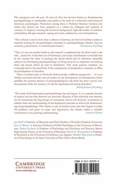 This important volume presents a definitive review of the origins and implications of developmental psychopathology and what has been learned about the phenomenon of psychosocial resilience in diverse populations at risk. Chapters by distinguished investigators in clinical psychology, psychiatry, and child development, many of whose work led to the new developmental model of psychopathology, provide a unique review of current research on vulnerability and resistance to disorder spanning from infancy to adulthood. The volume is a tribute to Professor Norman Garmezy, a pioneer in developmental psychopathology and a renowned researcher of resilience in children at risk. Highlighted throughout the volume is Professor Garmezy's theme that it is as important to understand successful outcomes as it is to study pathology in the search for better treatments and the prevention of developmental behavioural problems.
