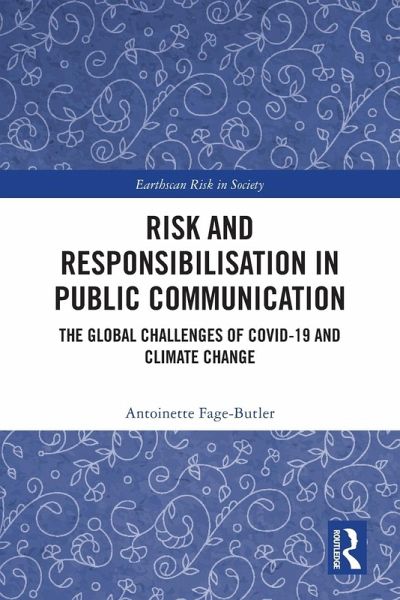 Our media spheres in the 2020s have been saturated with information about what we should or should not be doing to meet the challenges of the COVID-19 pandemic and climate change. Although the ability of risk communication to 'responsibilise' the public is central to its functioning in our societies, this aspect has so far been under-investigated in academia. To address this lacuna, Antoinette Fage-Butler develops a discursive approach to risk communication that focuses on the values that are communicated in risk messages. Examples of official risk communication about the pandemic and climate change from national and transnational contexts are analysed and compared, leading to new empirical findings and theoretical insights about the nature of risk and responsibilisation. Fage-Butler also builds on recent stirrings in the evolving field of risk communication that highlight the importance of cultural and value-related factors. Overall, this book will equip researchers with an approach to risk communication that reflects the complexity of today's global risk challenges.