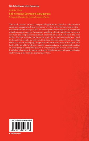 This book presents various concepts and applications related to risk-conscious operations management. It also provides an overview of the risk-based engineering - fundamental to the concept of risk-conscious operations management. It presents the reliability concept to support Dependency Modelling, which includes hardware systems structures and components for reliability improvement and risk reduction. The book further develops and builds attributes and model for risk-conscious culture - critical to characterize operational approach to risk and presents human factor modelling, where it works on developing an approach for human error precursor analysis. This book will be useful for students, researchers, academicians and professionals working on identifying risk and reliability issues in complex safety and mission critical systems. It will also be beneficial for industry risk-and-reliability experts and operational safety staff working in the complex engineering systems.