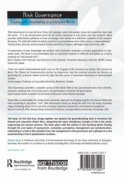 Provides guidance on how to manage risks based on a definitive synthesis of the research literature. This title offers a survey of the whole field of risk and demonstrates how scientific, economic, political and civil society actors can participate in inclusive risk governance.