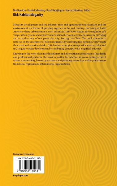 Megacity development and the inherent risks and opportunities for humans and the environment is a theme of growing urgency in the 21st century. Focusing on Latin America where urbanization is most advanced, this book studies the complexity of a 'mega-urban system' and explores interrelations between sectors and issues by providing an in-depths study of one particular city, Santiago de Chile. The book attempts to (i) focus on the emergence of risk in megacities by analyzing risk elements, (ii) evaluate the extent and severity of risks, (iii) develop strategies to cope with adverse risks, and (iv) to guide urban development by combining concepts with empirical evidence.