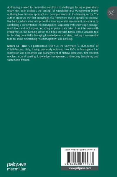 Addressing a need for innovative solutions to challenges facing organisations today, this book explores the concept of Knowledge Risk Management (KRM), outlining how this new approach can be implemented in the banking sector. The author proposes the first knowledge risk framework that is specific to cooperative banks, which aims to improve the accuracy of risk assessment procedures by combining a conventional risk management approach with knowledge management tools and techniques. Including empirical data taken from interviews with employees in the banking sector, this book provides banks with a valuable tool for tackling potentially damaging knowledge-related risks, making it an essential read for those researching risk management and banking.