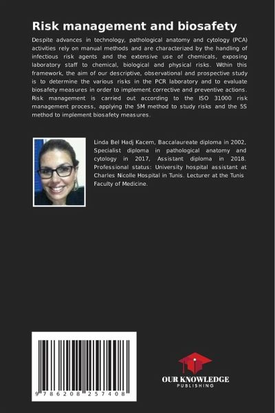 Despite advances in technology, pathological anatomy and cytology (PCA) activities rely on manual methods and are characterized by the handling of infectious risk agents and the extensive use of chemicals, exposing laboratory staff to chemical, biological and physical risks. Within this framework, the aim of our descriptive, observational and prospective study is to determine the various risks in the PCR laboratory and to evaluate biosafety measures in order to implement corrective and preventive actions. Risk management is carried out according to the ISO 31000 risk management process, applying the 5M method to study risks and the 5S method to implement biosafety measures.