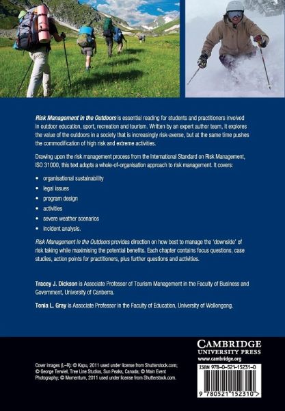 Risk Management in the Outdoors is essential reading for students and practitioners involved in outdoor education, sport, recreation and tourism. Written by an expert author team, it explores the value of the outdoors in a society that is increasingly risk- adverse, but at the same time pushes the commodification of high risk and extreme activities. Drawing upon the risk management process from the International Standard on Risk Management, ISO 31000, this text adopts a whole-of-organisation approach to risk management. It covers: ¿ organisational sustainability ¿ legal issues ¿ program design ¿ activities ¿ severe weather scenarios ¿ incident analysis . Risk Management in the Outdoors provides direction on how best to manage the 'down-side' of risk taking while maximising the potential benefits. Each chapter contains focus questions, case studies, action points for practitioners, plus further questions and activities.