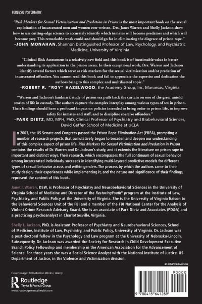 Risk Markers for Sexual Victimization and Predation in Prison contains the results of Dr. Warren and Dr. Jackson's study in response to the 2003 Prison Rape Elimination Act and extends the literature on prison rape in important and distinct ways.