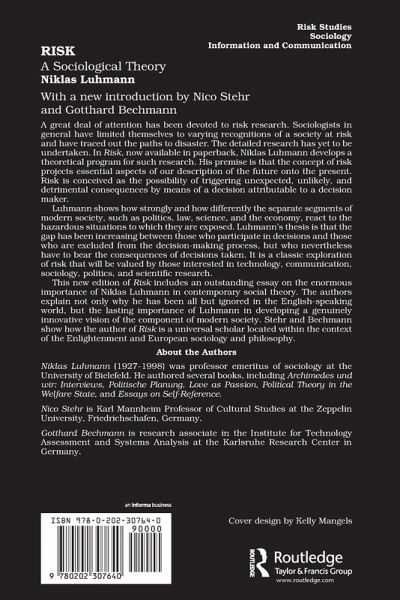 A great deal of attention has been devoted to risk research. Sociologists in general have limited themselves to varying recognitions of a society at risk and have traced out the paths to disaster. The detailed research has yet to be undertaken. In Risk, now available in paperback, Niklas Luhmann develops a theoretical program for such research. His premise is that the concept of risk projects essential aspects of our description of the future onto the present. Risk is conceived as the possibility of triggering unexpected, unlikely, and detrimental consequences by means of a decision attributable to a decision maker.…mehr