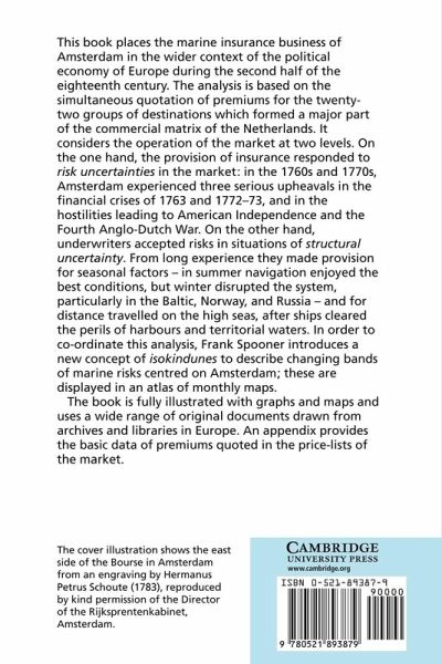 This book places the marine insurance business of Amsterdam in the wider context of the political economy of Europe during the second half of the eighteenth century. The analysis is based on the simultaneous quotations of premiums for the twenty-two groups of destinations which formed a major part of the commerical matrix of the Netherlands. It considers the operation of the market at two levels. On the one hand, the provision of insurance responded to risk uncertainties in the market: in the 1760s and 1770s, Amsterdam experienced three serious unheavals, in the form of the financial crises of 1763 and 1772-73 and the hostilities leading to American independence and the Fourth Anglo-Dutch War. On the other hand, underwriters accepted risks in situations of structural uncertainty. The book is fully illustrated with graphs and maps and uses a wide range of original documents drawn from archives and libraries in Europe. An appendix provides the basic data of premiums quoted in the price-lists of the market.