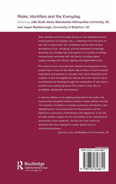 Risks, Identities and the Everyday focuses on the individual and the lived experience of everyday risks - a departure from the focus on risk from a macro level. The contributors look at risk and how perceptions of risk, risk taking, and risk assessment increasingly dominate our everyday lives and explore it in a variety of settings not previously associated with risk theory, including: plastic surgery, teenage sub-cultures, ageing and independent travel. The volume moves risk away from abstract theorising about what people may or may not fear about risks, to focus on how it actually materialises and operates in everyday 'real' social interactions and contexts. It also interrogates the rational self at the heart of macro social theories by thinking through the construction of risk choices and the socio-cultural dynamics that 'present' some risks as acceptable, appropriate and necessary.