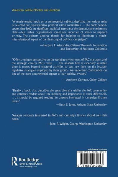 By 1990, there were over 4000 Political Action Committees (PACs) active and visible in the USA. This study covers various perspectives of PACs - size, contribution strategies, access to Washington information networks and issues - by means of diverse case studies.