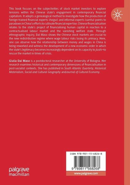 This book focuses on the subjectivities of stock market investors to explore tensions within the Chinese state's engagement in contemporary financial capitalism. It adopts a genealogical method to investigate how the production of foreign-trained financial experts (haigui) and informal experts (sanhu) points to paradoxes in China's efforts to cultivate financial expertise. Chinese financialisation relates to the state's project of financialising human capital in reaction to a contractualised labour market and the vanishing welfare state. Through ethnographic inquiry, Dal Maso shows the Chinese stock markets are crucial to the new redistributive regime where wage labour risks losing its primacy. Here, one can observe how the relationship between money and wages in China is being reworked and witness the development of a new economic order in which the state's legitimacy becomes increasingly dependent on its capacity to jiushi-to rescue the market in times of crisis.