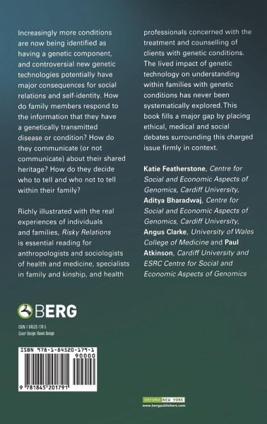 Increasingly more conditions are now being identified as having a genetic component, and controversial new genetic technologies potentially have major consequences for social relations and self-identity. How do family members respond to the information that they have a genetically transmitted disease or condition? How do they communicate (or not communicate) about their shared heritage? How do they decide who to tell and who not to tell within their family? Richly illustrated with the real experiences of individuals and families, Risky Relations is essential reading for anthropologists and sociologists of health and medicine, specialists in family and kinship, and health professionals concerned with the treatment and counselling of clients with genetic conditions. The lived impact of genetic technology on understanding within families with genetic conditions has never been systematically explored. This book fills a major gap by placing ethical, medical and social debates surrounding this charged issue firmly in context.