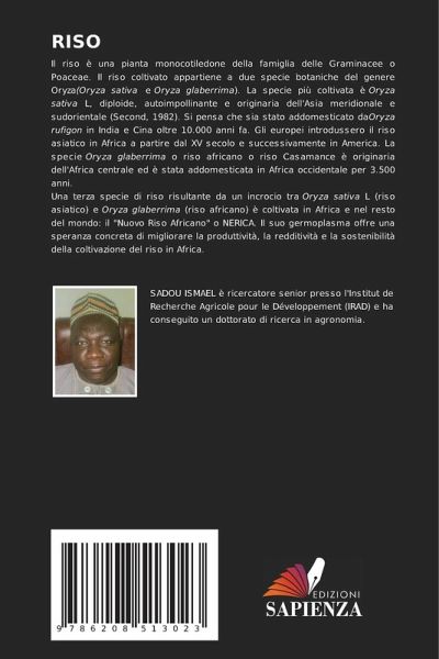 Il riso è una pianta monocotiledone della famiglia delle Graminacee o Poaceae. Il riso coltivato appartiene a due specie botaniche del genere Oryza(Oryza sativa e Oryza glaberrima). La specie più coltivata è Oryza sativa L, diploide, autoimpollinante e originaria dell'Asia meridionale e sudorientale (Second, 1982). Si pensa che sia stato addomesticato daOryza rufigon in India e Cina oltre 10.000 anni fa. Gli europei introdussero il riso asiatico in Africa a partire dal XV secolo e successivamente in America. La specie Oryza glaberrima o riso africano o riso Casamance è originaria dell'Africa centrale ed è stata addomesticata in Africa occidentale per 3.500 anni. Una terza specie di riso risultante da un incrocio tra Oryza sativa L (riso asiatico) e Oryza glaberrima (riso africano) è coltivata in Africa e nel resto del mondo: il "Nuovo Riso Africano" o NERICA. Il suo germoplasma offre una speranza concreta di migliorare la produttività, la redditività e la sostenibilità della coltivazione del riso in Africa.