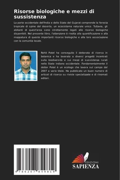 La parte occidentale dell'India e dello Stato del Gujarat comprende la foresta tropicale di spine del deserto, un ecosistema naturale unico. Tuttavia, gli abitanti di quest'area sono strettamente legati alle risorse biologiche disponibili. Nel presente libro, l'attenzione è rivolta alla quantificazione e alla mappatura di queste importanti risorse biologiche e alla loro associazione con la comunità locale.
