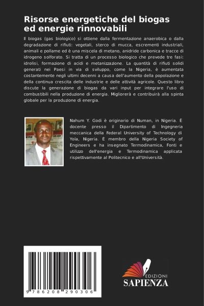 Il biogas (gas biologico) si ottiene dalla fermentazione anaerobica o dalla degradazione di rifiuti: vegetali, sterco di mucca, escrementi industriali, animali e pollame ed è una miscela di metano, anidride carbonica e tracce di idrogeno solforato. Si tratta di un processo biologico che prevede tre fasi: idrolisi, formazione di acidi e metanizzazione. La quantità di rifiuti solidi generati nei Paesi in via di sviluppo, come la Nigeria, è aumentata costantemente negli ultimi decenni a causa dell'aumento della popolazione e della continua crescita delle industrie e delle attività agricole. Questo libro discute la generazione di biogas da vari input per integrare l'uso di combustibili nella produzione di energia. Migliorerà e contribuirà alla spinta globale per la produzione di energia.