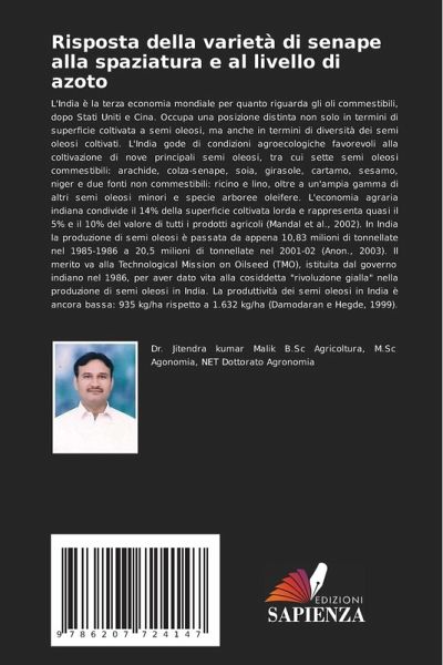 L'India è la terza economia mondiale per quanto riguarda gli oli commestibili, dopo Stati Uniti e Cina. Occupa una posizione distinta non solo in termini di superficie coltivata a semi oleosi, ma anche in termini di diversità dei semi oleosi coltivati. L'India gode di condizioni agroecologiche favorevoli alla coltivazione di nove principali semi oleosi, tra cui sette semi oleosi commestibili: arachide, colza-senape, soia, girasole, cartamo, sesamo, niger e due fonti non commestibili: ricino e lino, oltre a un'ampia gamma di altri semi oleosi minori e specie arboree oleifere. L'economia agraria indiana condivide il 14% della superficie coltivata lorda e rappresenta quasi il 5% e il 10% del valore di tutti i prodotti agricoli (Mandal et al., 2002). In India la produzione di semi oleosi è passata da appena 10,83 milioni di tonnellate nel 1985-1986 a 20,5 milioni di tonnellate nel 2001-02 (Anon., 2003). Il merito va alla Technological Mission on Oilseed (TMO), istituita dal governo indiano nel 1986, per aver dato vita alla cosiddetta "rivoluzione gialla" nella produzione di semi oleosi in India. La produttività dei semi oleosi in India è ancora bassa: 935 kg/ha rispetto a 1.632 kg/ha (Damodaran e Hegde, 1999).