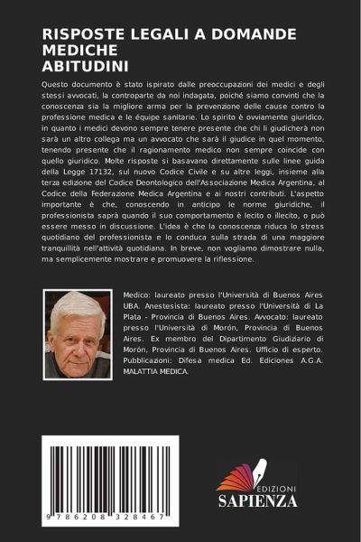 Questo documento è stato ispirato dalle preoccupazioni dei medici e degli stessi avvocati, la controparte da noi indagata, poiché siamo convinti che la conoscenza sia la migliore arma per la prevenzione delle cause contro la professione medica e le équipe sanitarie. Lo spirito è ovviamente giuridico, in quanto i medici devono sempre tenere presente che chi li giudicherà non sarà un altro collega ma un avvocato che sarà il giudice in quel momento, tenendo presente che il ragionamento medico non sempre coincide con quello giuridico. Molte risposte si basavano direttamente sulle linee guida della Legge 17132, sul nuovo Codice Civile e su altre leggi, insieme alla terza edizione del Codice Deontologico dell'Associazione Medica Argentina, al Codice della Federazione Medica Argentina e ai nostri contributi. L'aspetto importante è che, conoscendo in anticipo le norme giuridiche, il professionista saprà quando il suo comportamento è lecito o illecito, o può essere messo in discussione. L'idea è che la conoscenza riduca lo stress quotidiano del professionista e lo conduca sulla strada di una maggiore tranquillità nell'attività quotidiana. In breve, non vogliamo dimostrare nulla, ma semplicemente mostrare e promuovere la riflessione.