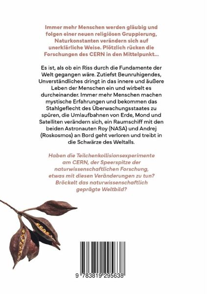 Immer mehr Menschen werden gläubig und folgen einer neuen religiösen Gruppierung, Naturkonstanten verändern sich auf unerklärliche Weise. Plötzlich rücken die Forschungen des CERN in den Mittelpunkt. Es ist, als ob ein Riss durch die Fundamente der Welt gegangen wäre. Zutiefst Beunruhigendes, Unverständliches dringt in das innere und äußere Leben der Menschen ein und wirbelt es durcheinander. Immer mehr Menschen machen mystische Erfahrungen und bekommen das Stahlgeflecht des Überwachungsstaates zu spüren, die Umlaufbahnen von Erde, Mond und Satelliten verändern sich, ein Raumschiff mit den beiden Astronauten Roy (NASA) und Andrej (Roskosmos) an Bord geht verloren und treibt in die Schwärze des Weltalls. Haben die Teilchenkollisionsexperimente am CERN, der Speerspitze der naturwissenschaftlichen Forschung, etwas mit diesen Veränderungen zu tun? Bröckelt das naturwissenschaftlich geprägte Weltbild?