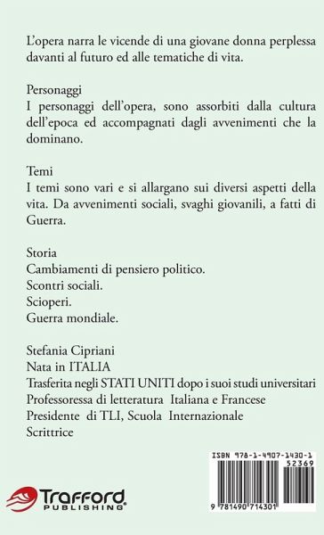 L'opera narra le vicende di una giovane donna perplessa davanti al futuro ed alle tematiche di vita. Personaggi I personaggi dell'opera, sono assorbiti dalla cultura dell'epoca ed accompagnati dagli avvenimenti che la dominano. Temi I temi sono vari e si allargano sui diversi aspetti della vita. Da avvenimenti sociali, svaghi giovanili, a fatti di Guerra. Storia Cambiamenti di pensiero politico. Scontri sociali. Scioperi. Guerra mondiale.