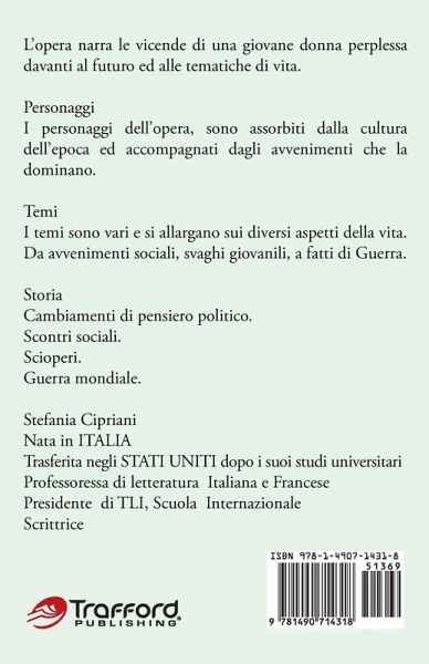 L'opera narra le vicende di una giovane donna perplessa davanti al futuro ed alle tematiche di vita. Personaggi I personaggi dell'opera, sono assorbiti dalla cultura dell'epoca ed accompagnati dagli avvenimenti che la dominano. Temi I temi sono vari e si allargano sui diversi aspetti della vita. Da avvenimenti sociali, svaghi giovanili, a fatti di Guerra. Storia Cambiamenti di pensiero politico. Scontri sociali. Scioperi. Guerra mondiale.