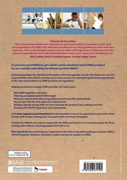 Cheminais takes on board the latest 2014 DfE Statutory Guidance and the practical implications of the 2014 Care Act, creating an easy-to-use reference manual, with a handy glossary and a table that serves as an aide memoire to the constantly evolving and proliferating family of educational acronyms. The book is further supported by a wealth of online time-saving resources downloadable from the SAGE website. [...] The handbook is probably an essential purchase for SENCOs and programme managers of Supported Learning sections in FE but both parents and educational psychologists/specialist teachers operating in a freelance capacity would find it an invaluable guide to the altered SEND landscape in 2015. Katy Parnell, Postgraduate Education Tutor, Dyslexia Action and Additional Learning Support (Neurodiversity) Tutor at Richmond upon Thames College