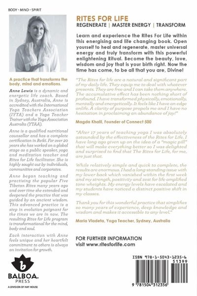 This book contains renowned five antiaging rites. Another three are now revealed. Learn how to unlock the magic of your life's purpose! Experience your being in every moment. A series of eight exercises with precise instructions, modifications, and benefits will allow the reader an easy guide to transformation.