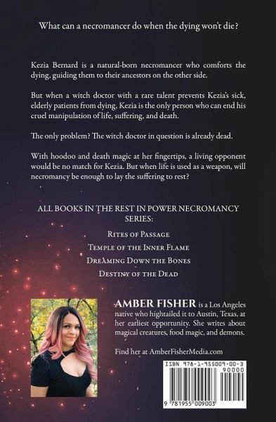 What can a necromancer do when the dying won't die? Kezia Bernard is a natural-born necromancer who comforts the dying, guiding them to their ancestors on the other side. But when a witch doctor with a rare talent prevents Kezia's sick, elderly patients from dying, Kezia is the only person who can end his cruel manipulation of life, suffering, and death. The only problem? The witch doctor in question is already dead. With hoodoo and death magic at her fingertips, a living opponent would be no match for Kezia. But when life is used as a weapon, will necromancy be enough to lay the suffering to rest?