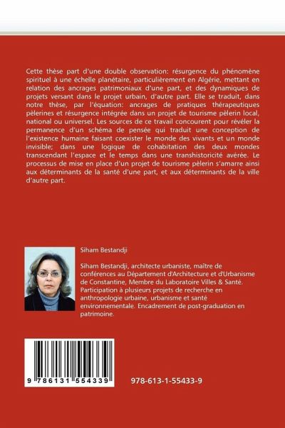 Cette thèse part d'une double observation: résurgence du phénomène spirituel à une échelle planétaire, particulièrement en Algérie, mettant en relation des ancrages patrimoniaux d'une part, et des dynamiques de projets versant dans le projet urbain, d'autre part. Elle se traduit, dans notre thèse, par l'équation: ancrages de pratiques thérapeutiques pèlerines et résurgence intégrée dans un projet de tourisme pèlerin local, national ou universel. Les sources de ce travail concourent pour révéler la permanence d'un schéma de pensée qui traduit une conception de l'existence humaine faisant coexister le monde des vivants et un monde invisible; dans une logique de cohabitation des deux mondes transcendant l'espace et le temps dans une transhistoricité avérée. Le processus de mise en place d'un projet de tourisme pèlerin s'amarre ainsi aux déterminants de la santé d'une part, et aux déterminants de la ville d'autre part.