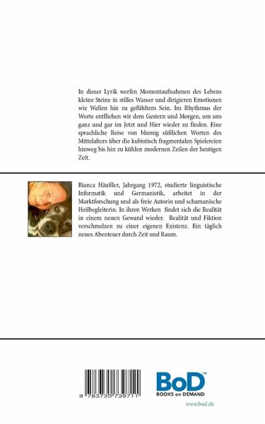 In dieser Lyrik werfen Momentaufnahmen des Lebens kleine Steine in stilles Wasser und dirigieren Emotionen wie Wellen hin zu gefühltem Sein. Im Rhythmus der Worte entfliehen wir dem Gestern und Morgen, um uns ganz und gar im Jetzt und Hier wieder zu finden. Eine sprachliche Reise von blumig süßlichen Worten des Mittelalters über die kubistisch fragmentalen Spielereien hinweg bis hin zu kühlen modernen Zeilen der heutigen Zeit.