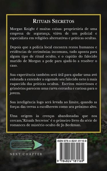 Morgan Knight é muitas coisas: proprietária de uma empresa de segurança, viúva de um policial e especialista em religiões alternativas e práticas ocultas. Depois que a polícia local encontra restos humanos e evidências de cerimônias incomuns, tudo aponta para algum tipo de ritual oculto, e o capitão do falecido marido de Morgan a pede para ajudá-lo a resolver o caso. Sua experiência também será útil para ajudar uma avó enlutada a entender a oigemde seu falecido neto à mais esquecida das práticas ocultas. Escritos misteriosos e grimórios parecem uma curva estranha e curiosa para o jovem. Sua inteligência logo será levada ao limite, quando as forças das trevas a escolherem como seu próximo alvo. Uma origem às crenças abandonadas que nos cercam,"Rituals Secretos" é o primeiro livro da série de romances de mistério oculto de Jo Beekman.