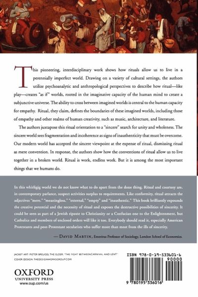 This book argues for the continuing tension across historical contexts between movements emphasizing ritual and movements emphasizing sincerity. Our contemporary age has, at great risk, downplayed the importance of ritual. Drawing on examples from Chinese, Greek, Jewish, and contemporary culture, the book presents an innovative interdisciplinary account of how ritual works.