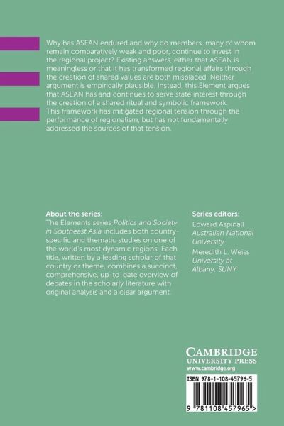 Argues that ASEAN endures as it serves state interest through the creation of a shared ritual and symbolic framework.