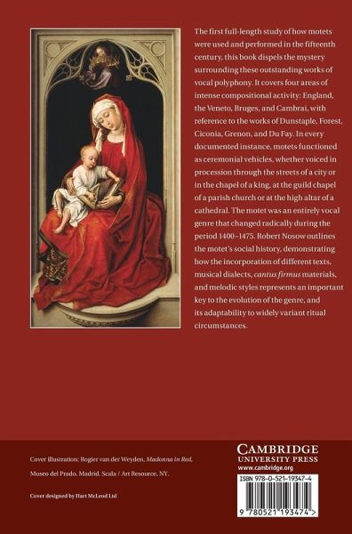 The first full-length study of how motets were used and performed in the fifteenth century, this book dispels the mystery surrounding these outstanding works of vocal polyphony. It covers four areas of intense compositional activity: England, the Veneto, Bruges and Cambrai, with reference to the works of Dunstaple, Forest, Ciconia, Grenon and Du Fay. In every documented instance, motets functioned as ceremonial vehicles, whether voiced in procession through the streets of a city or the chapel of a king, at the guild chapel of a parish church or the high altar of a cathedral. The motet was an entirely vocal genre that changed radically during the period from 1400 to 1475. Robert Nosow outlines the motet's social history, demonstrating how the incorporation of different texts, musical dialects, cantus firmus materials and melodic styles represents an important key to the evolution of the genre, and its adaptability to widely variant ritual circumstances.