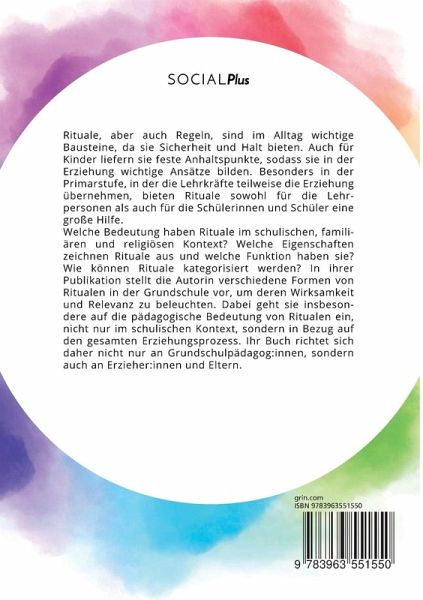 Rituale, aber auch Regeln, sind im Alltag wichtige Bausteine, da sie Sicherheit und Halt bieten. Auch für Kinder liefern sie feste Anhaltspunkte, sodass sie in der Erziehung wichtige Ansätze bilden. Besonders in der Primarstufe, in der die Lehrkräfte teilweise die Erziehung übernehmen, bieten Rituale sowohl für die Lehrpersonen als auch für die Schülerinnen und Schüler eine große Hilfe. Welche Bedeutung haben Rituale im schulischen, familiären und religiösen Kontext? Welche Eigenschaften zeichnen Rituale aus und welche Funktion haben sie? Wie können Rituale kategorisiert werden? In ihrer Publikation stellt die Autorin verschiedene Formen von Ritualen in der Grundschule vor, um deren Wirksamkeit und Relevanz zu beleuchten. Dabei geht sie insbesondere auf die pädagogische Bedeutung von Ritualen ein, nicht nur im schulischen Kontext, sondern in Bezug auf den gesamten Erziehungsprozess. Ihr Buch richtet sich daher nicht nur an Grundschulpädagog:innen, sondern auch an Erzieher:innen und Eltern. Aus dem Inhalt: - Ritualtheorien; - Übergangsriten; - Integrationsfunktion; - Soziale Angliederung; - Krisenbewältigung
