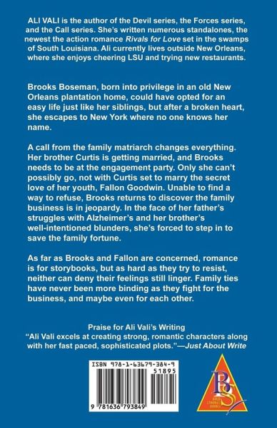 Brooks Boseman, born into privilege in an old New Orleans plantation home, could have opted for an easy life just like her siblings, but after a broken heart, she escapes to New York where no one knows her name. A call from the family matriarch changes everything. Her brother Curtis is getting married, and Brooks needs to be at the engagement party. Only she can't possibly go, not with Curtis set to marry the secret love of her youth, Fallon Goodwin. Unable to find a way to refuse, Brooks returns to discover the family business is in jeopardy. In the face of her father's struggles with Alzheimer's and her brother's well-intentioned blunders, she's forced to step in to save the family fortune. As far as Brooks and Fallon are concerned, romance is for storybooks, but as hard as they try to resist, neither can deny their feelings still linger. Family ties have never been more binding as they fight for the business, and maybe even for each other.