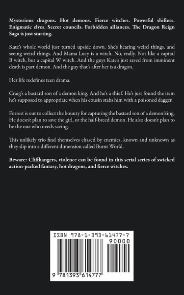 Mysterious dragons. Hot demons. Fierce witches. Powerful shifters. Enigmatic elves. Secret councils. Forbidden alliances. The Dragon Reign Saga is just starting. Kate's whole world just turned upside down. She's hearing weird things, and seeing weird things. And Mama Lucy is a witch. No, really. Not like a capital B witch, but a capital W witch. And the guys Kate's just saved from imminent death is part demon. And the guy that's after her is a dragon. Her life redefines teen drama. Craig's a bastard son of a demon king. And he's a thief. He's just found the item he's supposed to appropriate when his cousin stabs him with a poisoned dagger. Forrest is out to collect the bounty for capturing the bastard son of a demon king. He doesn't plan to save the girl, or the half-breed demon. He also doesn't plan to be the one who needs saving. This unlikely trio find themselves chased by enemies, known and unknown as they slip into a different dimension called Burnt World. Beware: Cliffhangers, violence can be found in this serial series of swicked action-packed fantasy, hot dragons, and fierce witches.
